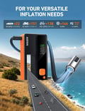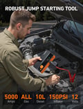 AstroAI M12-F Portable Jump Starter with Air Compressor, 5000A Car Battery Booster Pack & 150PSI Car Battery Jump Starter (All Gas & 10.0 L Diesel) with tire inflator, Intuitive LED Screen